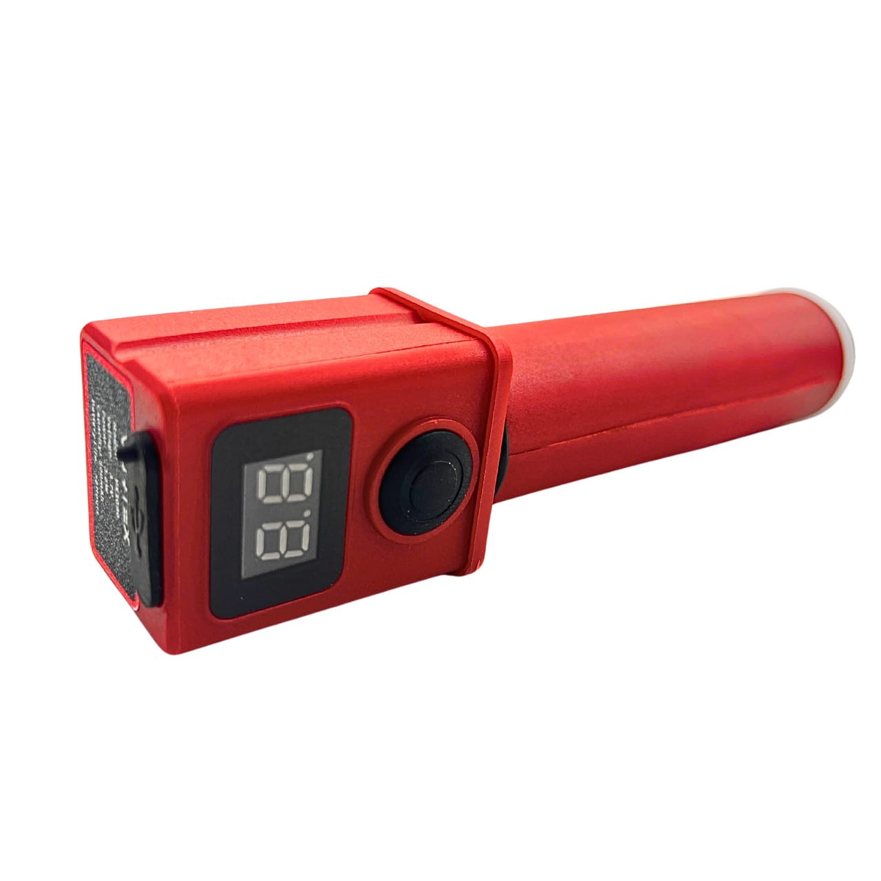 Po wymianie tłoczka włączamy go jednym krótkim przyciskiem włącznika. Dłuższe przyciśnięcie załączy pompę. Podwójne krótkie przyciśnięcie wyłączy tłoczek. Wyświetlacz LCD wskazuje status naładowania baterii w skali P1-P9.