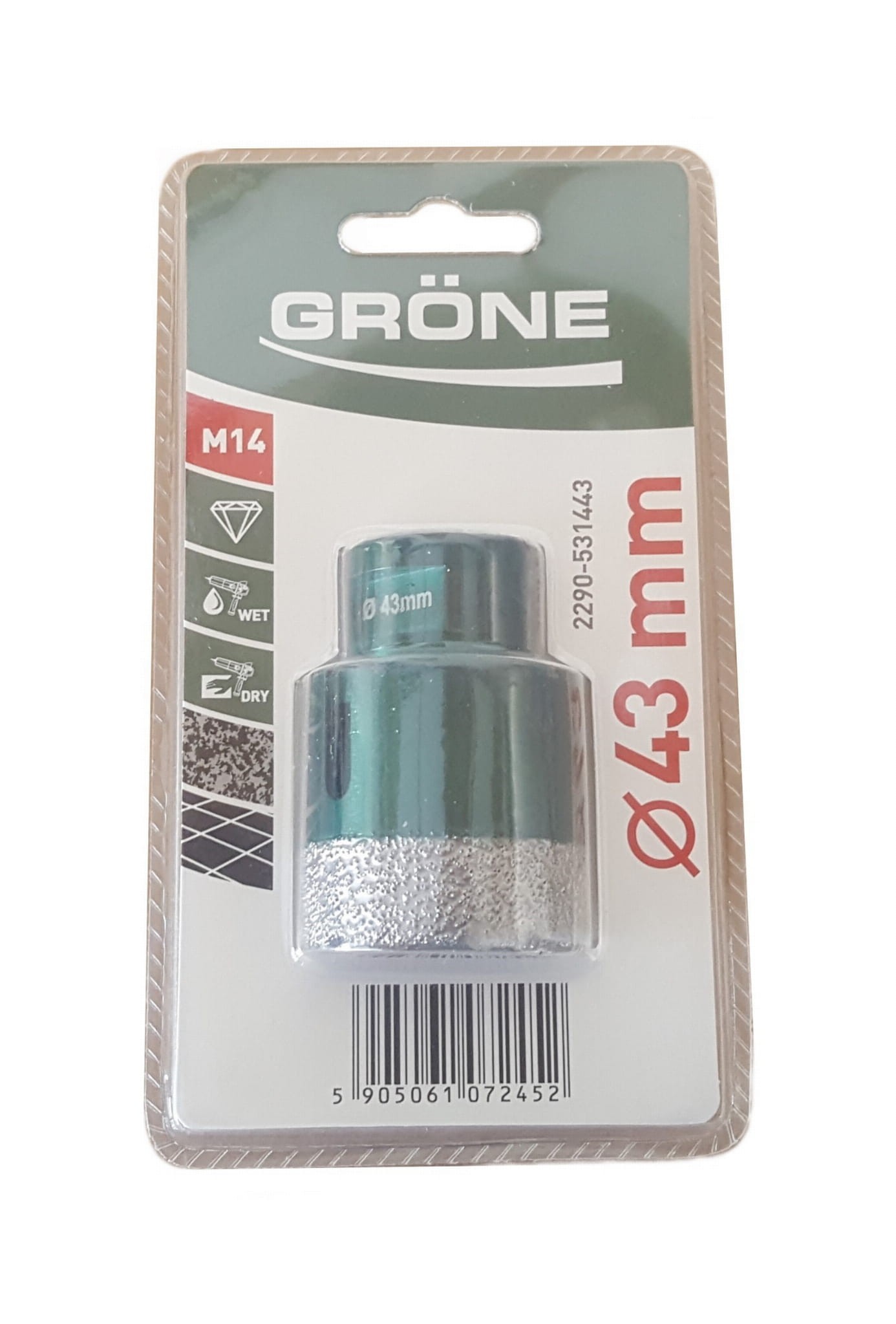 Koronka diamentowa Grone, otwornica 43mm M14