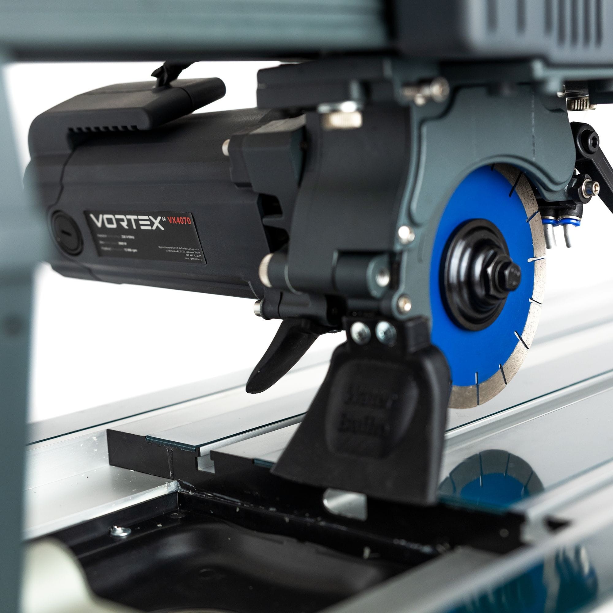 Przecinarka Vortex VX4070 wyróżnia się spośród innych urządzeń tego typu dostępnych na rynku dzięki kilku innowacyjnym rozwiązaniom, które znacząco wpływają na jej stabilność, precyzję oraz efektywność pracy. Konstrukcja maszyny opiera się na zastosowaniu tarcz o mniejszym rozmiarze oraz otworze centrującym 20mm co przekłada się na zwiększoną stabilność oraz precyzję cięcia.