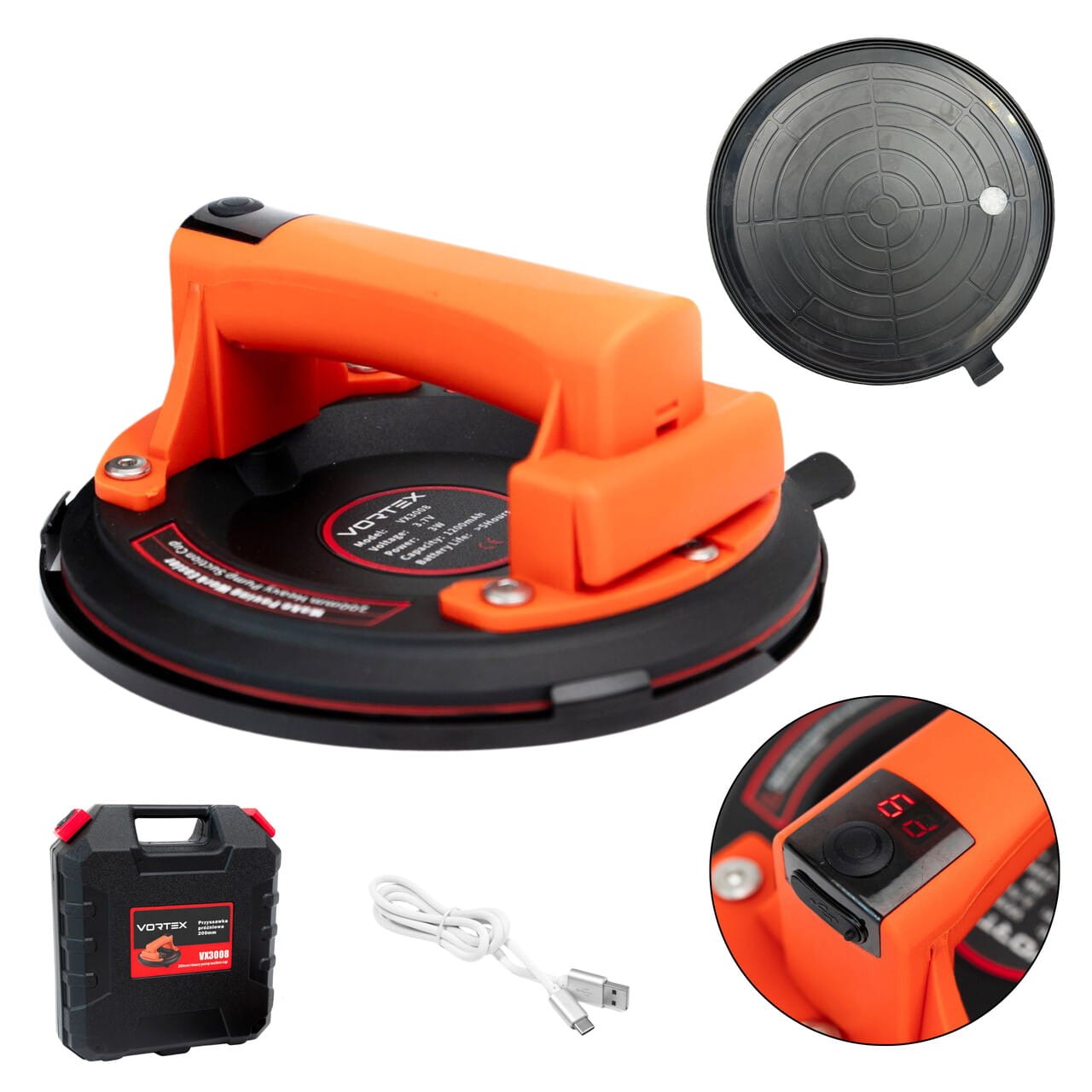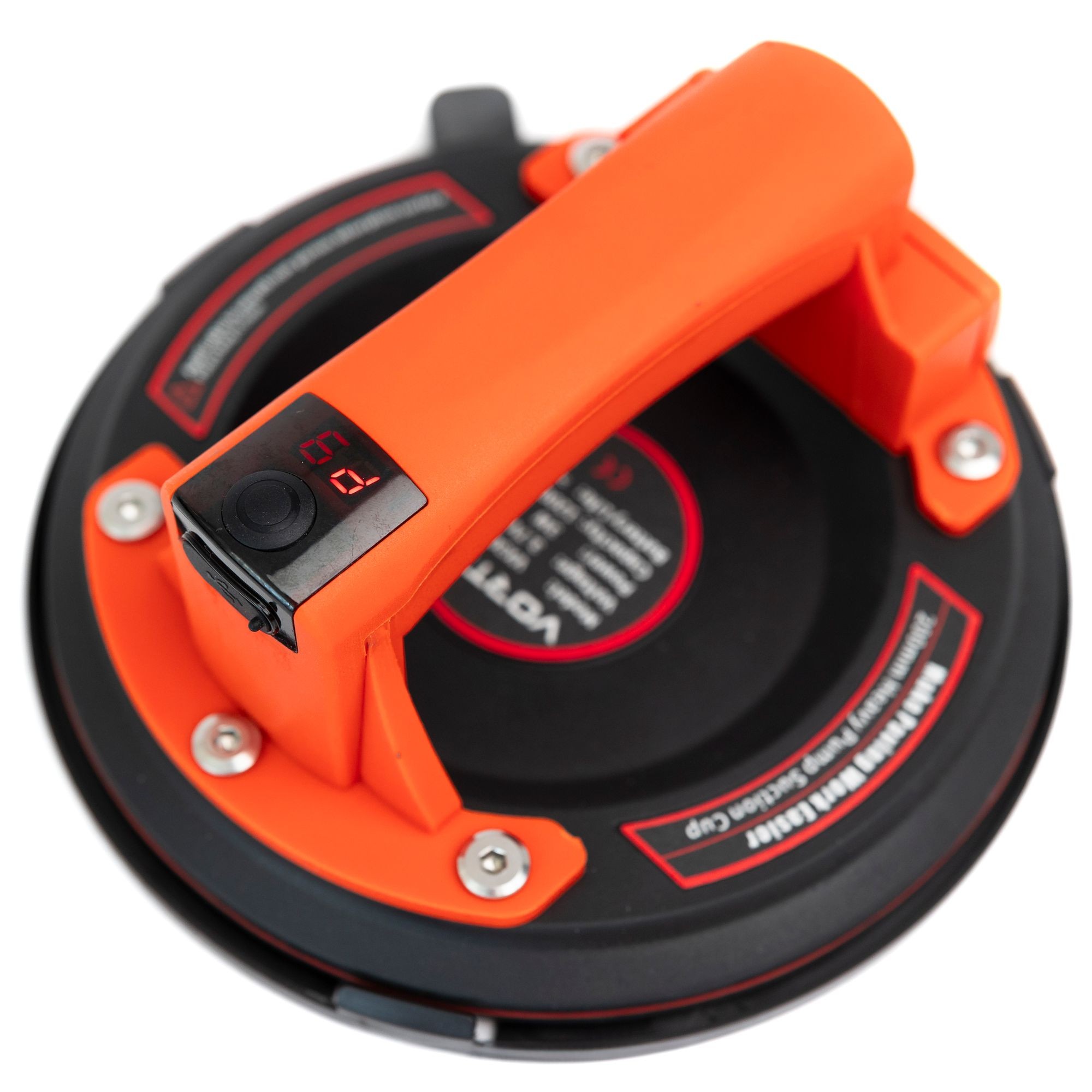 Jednym przyciskiem przyssawka VORTEX włącza się generując podciśnienie i utrzymuje stabilną przyczepność do danego materiału. Na cyfrowym wyświetlaczu użytkownik będzie informowany o aktualnym stanie podciśnienia. Następnie tym samym przyciskiem możemy zwolnić podciśnienie i zwolnić uchwyt.