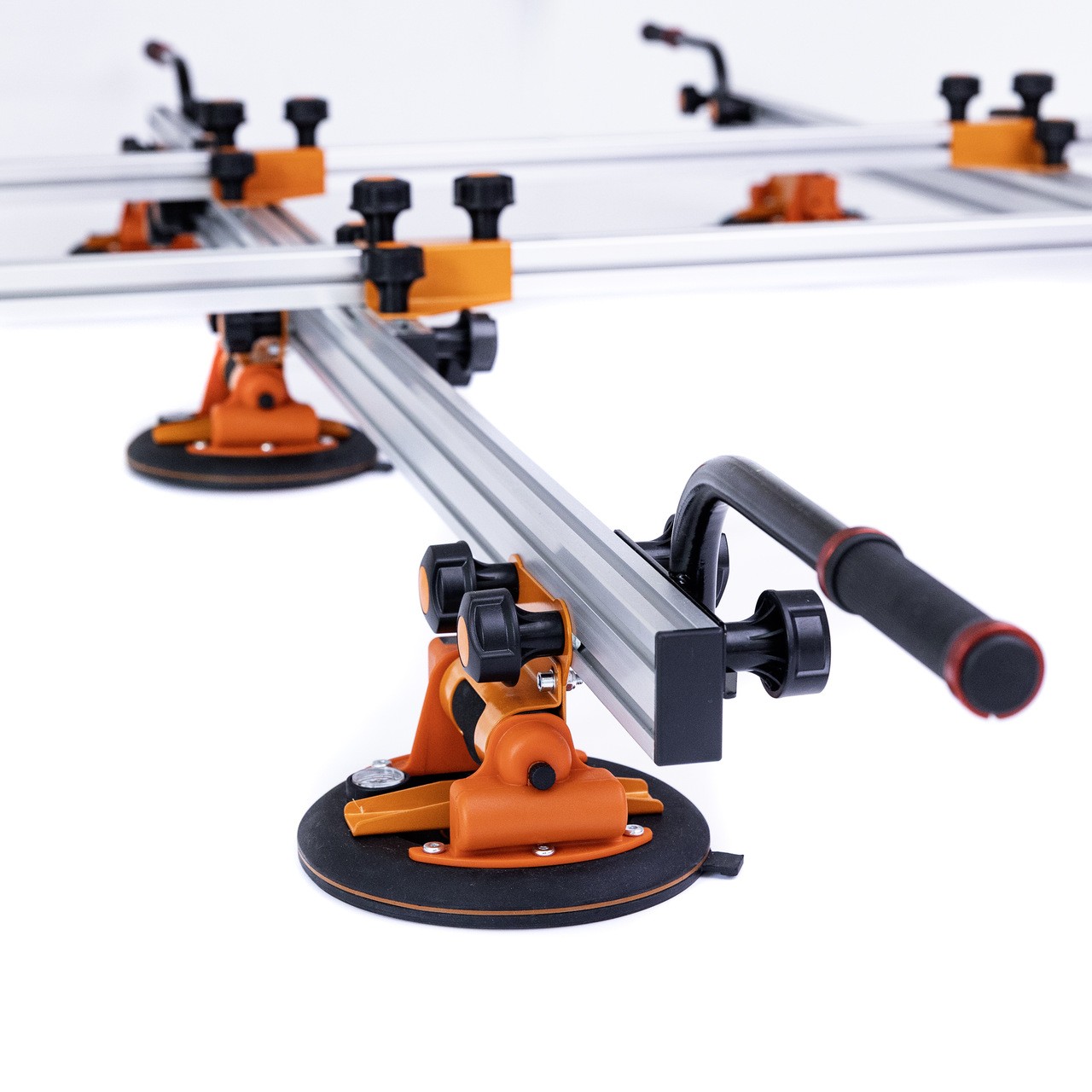 Nosidło VORTEX VX3054 to zaawansowana rama transportowa z automatycznymi, elektrycznymi przyssawkami, zaprojektowana z myślą o bezpiecznym przenoszeniu, pozycjonowaniu i montażu dużych formatów.